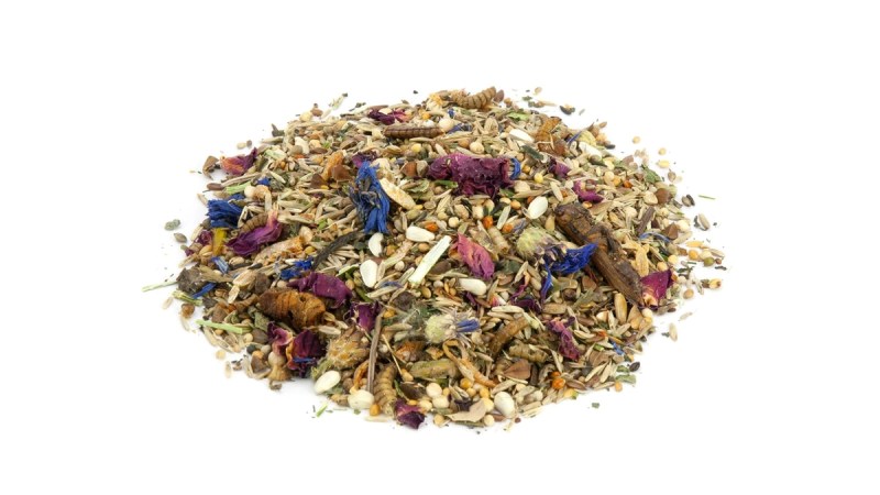 Samenstelling: 20% raaigraszaden, 10% wilde zaden, 4% boekweit, 4% dari, 4% millet geel, 4% hennepzaad, 4% saffloerzaad, 4% lijnzaadbruin, 4% lijnzaadgoud, 4% milo, 4% negerzaad, 2% groene millet, 2% Japanse millet, 2% kanariezaad, 2% klaverzaad, 2% mariadistelzaad, 2% dille, 2% Marokkaanse millet, 2% rode millet, 2% zijderups, 2% Senegal millet , 2% Zilver – Millet, 2% Hermetia, 2% weegbree, 1% spinaziezaden, 1% blauwe korenbloembloesem, 1% rozenbloesem, 1% brandnetel, 1% meelwormen, 1% venkelzaad, 1% riviergarnalen, 1 % krekels